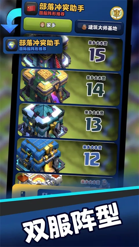 COC阵型复制工具特色丰富。它提供近两千个国内和国际服阵形,还有各服务器阵形链接。资源、冲杯、部落战、创意阵型等一应俱全,甚至能复制配兵。闪震计算器可精准计算最优法术搭配,助玩家进攻更出色。能跟进部落冲突最新前瞻资讯,让玩家先人一步了解游戏动态。涵盖家乡、建筑大师基地等全部兵种法术建筑英雄升级数据。一键复制即可在游戏中布置阵形,建筑大师基地2.0阵形新增防御偏好显示,17本阵型已发布,还支持关联SupercellID同步游戏进度。
