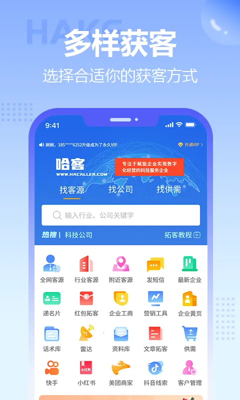 哈客是一款销售办公软件,在提升业务方面表现出色。它能助力用户实现精准自动化和数字化营销推广,找客源供货商都极为方便。创建客户档案、管理销售机会、制定销售计划、跟进销售机会以及分析销售数据等一系列功能,让销售流程更加顺畅高效。