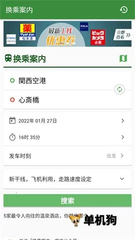 换乘案内2026最新版本特色满满。它**全面覆盖日本交通信息**,铁路、地铁、飞机及部分公共交通工具信息皆有,满足多样出行需求。提供精确换乘指南,含换乘次数、地点、等待时间与步行距离等,助用户高效规划行程。实时数据更新,交通信息和时刻表实时准确,避免因信息滞后带来不便。还支持多语言,全中文查询降低语言障碍,操作简单快捷,附加购物打折优惠券等功能,增加额外价值。