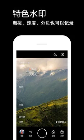 实时更新:水印可自动更新为实时的日期、地点、天气等信息,经纬度、海拔、速度、分贝也能记录。