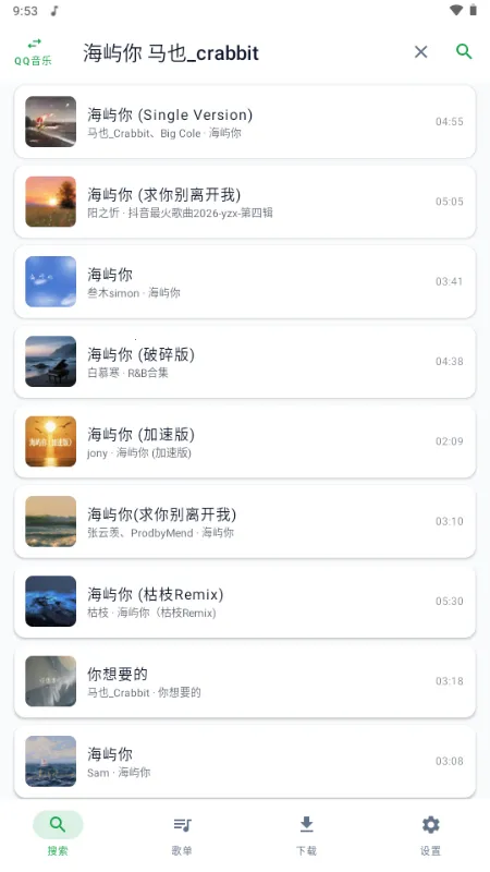 拥有智能搜索功能,能快速精准匹配目标歌曲,同步展示相关专辑歌手资料与热门作品,并智能推荐相似风格歌曲,轻松发现更多宝藏音乐。