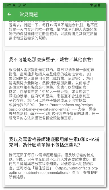 每日12清单app专注食物清单服务,基于多年研究,列出健康日常饮食中最重要食物清单,详细介绍每种食物及每日摄入量,其创作者相关书籍、DVD和演讲收益均捐给慈善机构。