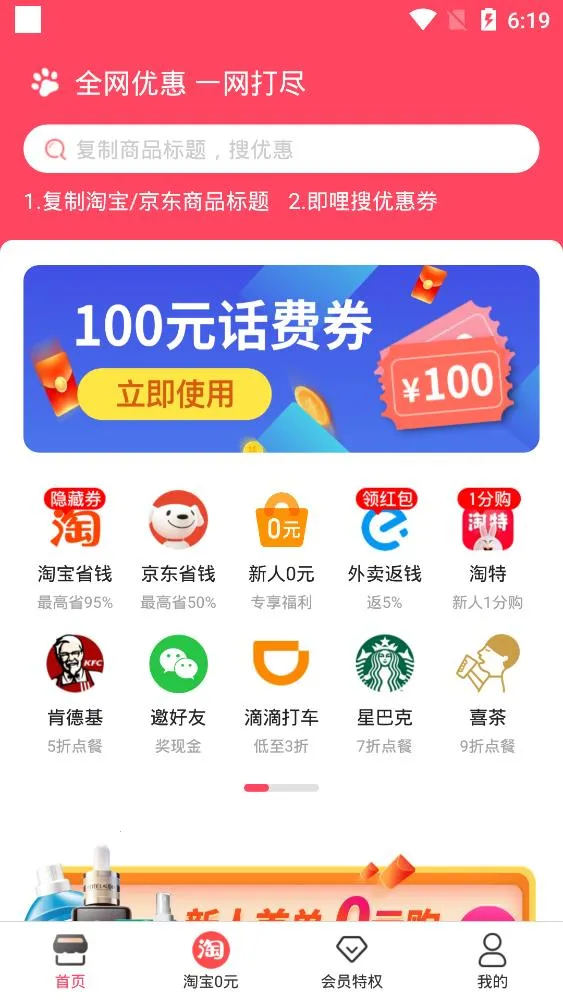 1. 海量权益福利多:每天为用户提供各种权益福利优惠券,涵盖0元抢购、网购返利、外卖省钱等,适用场景广泛,轻松薅羊毛。