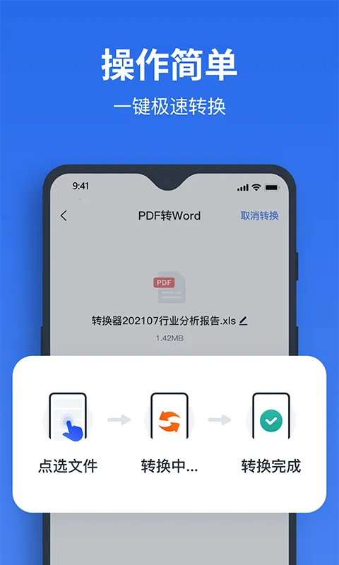 这是一款全新上线的转换 app。操作简单,能一键极速转换,还可批量导出所需文件,大部分功能免费。它是专业高效的 PDF 处理工具,可在手机上实现 PDF 文件与多种格式互转,包括 office 格式、图片格式等。稳定的性能及专业文件格式处理系统,为各行业人士解决 PDF 转换问题,提高处理效率。有一键导出与分享功能,输出文档能随时导出分享。文件可在 PDF 与 office 间互相转换,还支持更多办公必备工具。平台优势明显,能进行 PDF 转多种格式以及其他格式转 PDF,文档转换支持多种常见格式,图片也能生成 PDF 文件,且更新内容修复了已知问题。
