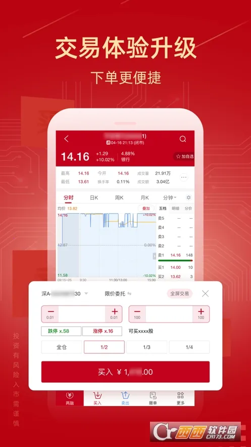 新时代证券是经中国证监会批准成立于2003年北京海淀区的证券公司,如今尚未覆盖全国省市,发展相对较慢。其金融服务平台为用户提供最新的市场行情,支持在线股票期货交易,还有行业大咖在线指导,帮助用户获得最大收益。该平台现已改名为诚通证券,完美移植了电脑版的所有特色,拥有多个栏目,能为用户提供及时安全的网上股票浏览、交易等服务,帮助投资者随时随地把握行情获得最佳买入卖出点。如果你正在寻找一款正规的证券交易软件,新时代证券(诚通证券)或许值得一试。