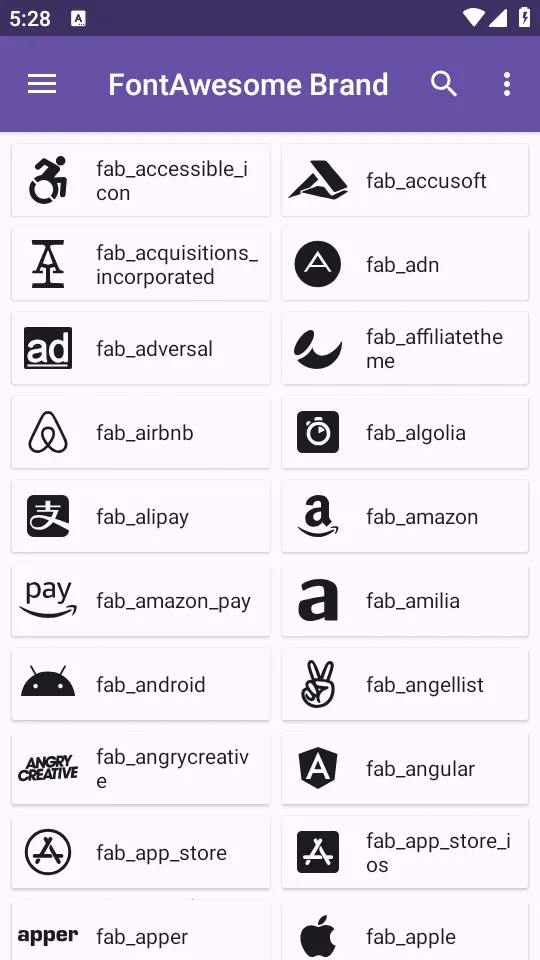 2. 方便搜索:下载安装后打开可直接使用,点左上角菜单按钮能查看所有图标类型,支持直接查看,输入文字可快速搜索出相应图标。