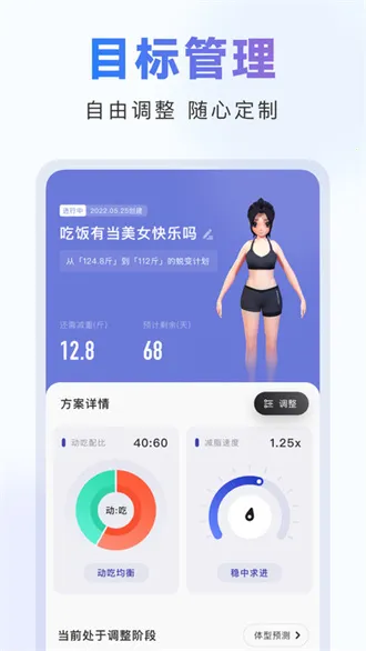 1. <**b style="color:red;font-weight: bolder">专属逆袭计划**:依据身体状况和目标体型,科学定制专属计划,简单易坚持,每天分配卡路里任务,一周内可见成果。