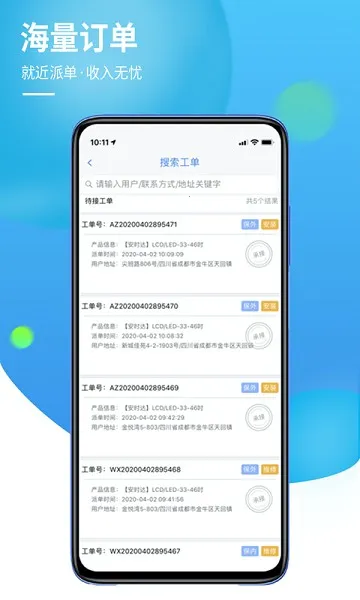 3. 服务覆盖范围广:平台服务覆盖全国范围,拥有上千厂家及百万客户资源,单量大收入稳定,能满足不同地区用户维修安装清洗等需求。