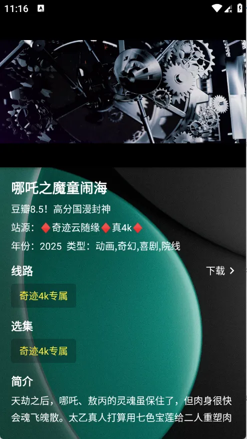 化神4K是一款特色鲜明的影视播放软件。它以丰富内容与流畅体验为核心,为用户带来便捷追剧享受。平台涵盖电影、剧集、动漫、综艺等多元品类,内容库持续更新,能满足不同用户日常观看需求。其内置多条播放线路,切换灵活,加载速度稳定。软件支持投屏、下载功能,还可自定义播放设置。用户通过简单操作就能找到想看内容,轻松享受高清在线观影,是追剧的不错选择。