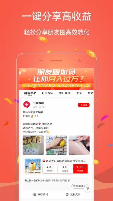 想领取手淘优惠券?这款手淘优惠券APP就能帮你轻松搞定!它是一款超棒的购物理财式导购软件。这里有海量商品任你选,每天更新专享优惠券,大额券仅限此渠道,用券立减现金超划算。微信一键登录,无需单独注册,同步手淘海量商品。促销活动天天有,类目全,还同步聚划算、淘抢购精选活动,省上加省。它能解决你购物怕贵的问题,让你先领券再下单,更优惠。商品收货还有返利,边刷视频边购物超方便。有1.9专区不限量包邮还返佣,还有达人推荐、外卖红包、查历史价等特色功能。支持多平台一键搜券,好物圈精选商品能一键发圈赚佣,限时秒杀天天有。购物本金还能赚利息,最高20年化收益率!全新界面信息一目了然,赶紧下载体验吧!