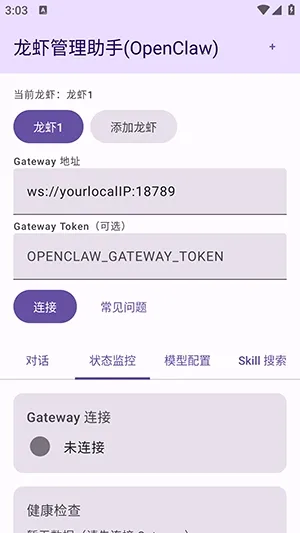 龙虾管理助手是专属客户端应用,新手老手易上手。集成多项核心能力,满足多样需求。有Skill库、日志查看等功能,支持多场景。采用轻量化设计,本地连接稳,交互流畅,可自定义模型参数。