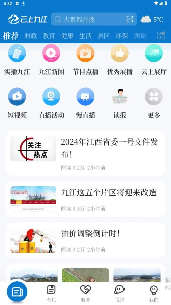 云上九江 2025 官方正版是九江市广播电视台重点打造的新媒体平台,由市委宣传部管理。提供新闻直播、回看,全资讯发布等,风格清爽简洁,功能全面,能看节目、发爆料、订阅电台,还有全新 UI 设计等。