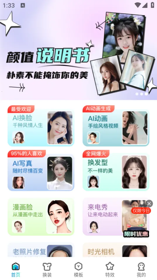 2、海量滤镜模板:拥有各种风格的滤镜,从甜美文艺到清新自然应有尽有,还有大量修图模板,套用就能快速打造专业水准照片效果。