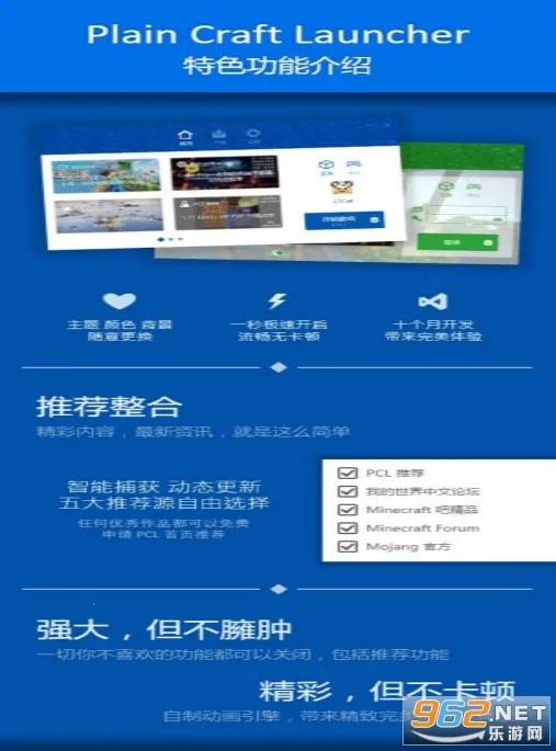 PCL启动器2025官方正版特色显著。它专为我的世界游戏精心打造,能极大简化游戏启动流程。拥有齐全实用功能,内置海量游戏模组,可轻松管理与卸载。通过它管理游戏模组十分便捷,还能带来手游攻略。其兼容性超棒,支持多数PC游戏尤其是大型3D游戏,能有效提升性能。优化系统设置,为游戏释放更多资源,增强运行稳定性与流畅性,操作简单方便,是我的世界玩家的得力助手。