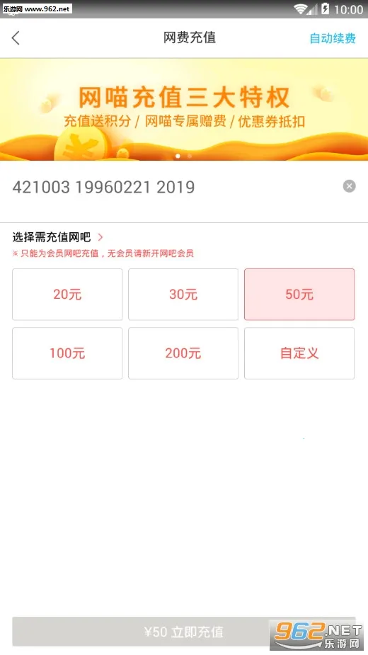 2. 便捷订座充值:实时线上网吧座位图,可在线预约座位,随时随地订座。还能线上充值网费,多个额度任你选。