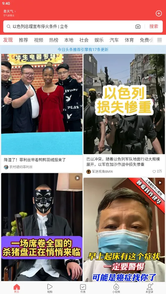 海量内容丰富多样:涵盖新闻、小说、体育、财经等海量内容,还有新鲜短视频,搞笑视频应有尽有,满足你的多样需求。