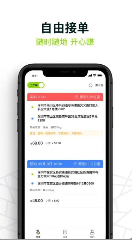 自由接单超便捷:配送员可随时随地自由接单,不受时间和地点限制,轻松开启赚钱之旅。