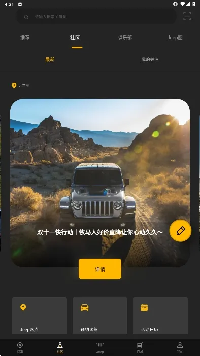 Jeep2025最新版本是一款专为吉普车车主打造的资讯服务平台。提供各类车型信息,支持远程车控、预约充电等功能,能回放行车轨迹,还有丰富资讯和车友互动,助车主轻松用车、了解汽车动态。