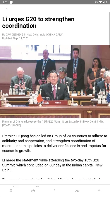 2、功能丰富实用:有定制话题订阅功能,能打造专属资讯流;离线阅读功能让阅读不受网络限制;针对外籍人士有实用信息和双语栏目;内置实时查词功能助您快速理解生词;Audio频道提升英语听力,Speakingtest功能模拟真实场景练口语,新闻机器人增加阅读互动性。