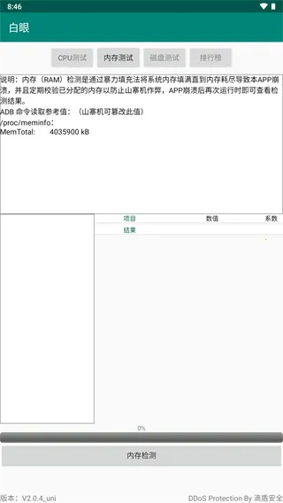 白眼2025最新版本是一款专业系统检测软件,含多项测试功能,无需root权限,无广告弹窗。能帮用户检测手机配置,对比官方参数辨真伪,还可查CPU、内存等信息,体积小,免费开源,操作简洁。