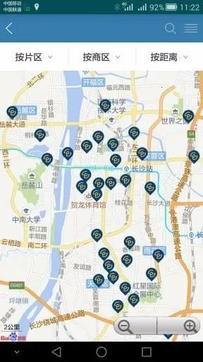2、清晰车位寻找:打开地图,全城停车场分布一目了然,快速定位附近停车场及剩余车位。