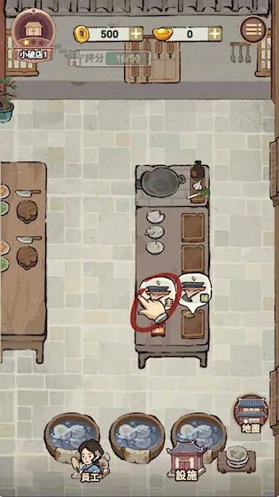 4、员工互动养成:招募有独特背景故事的员工,如落魄书生、江湖侠女等,与其互动触发专属剧情,提升忠诚度,经营中提供效率加成。