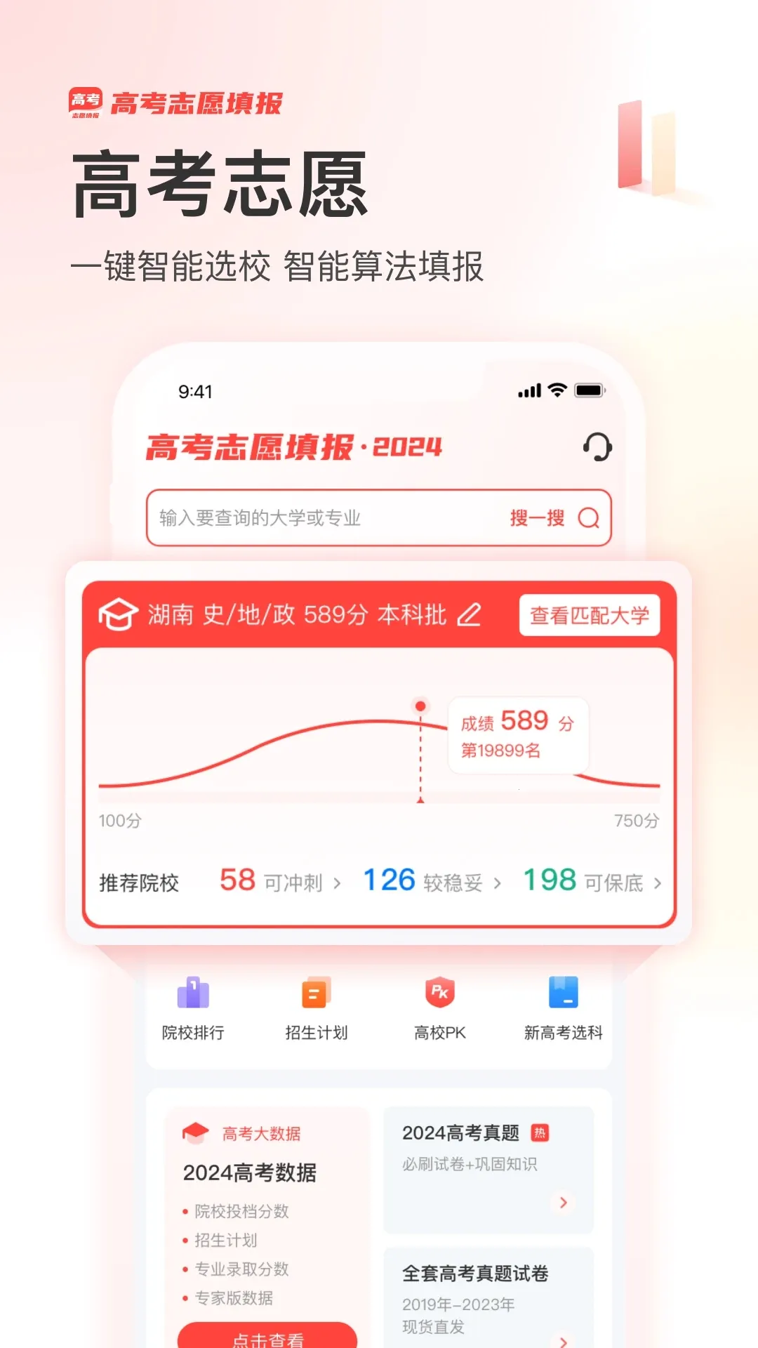 3. 志愿填报更科学:依据新高考填报规则,快速生成匹配个人成绩的多种填报候选方案,输入成绩还能多策略推荐志愿填报方案。