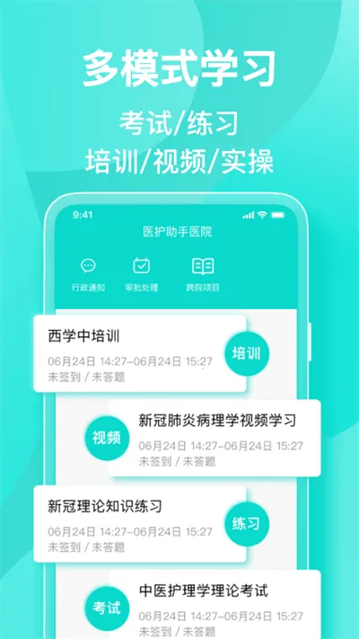 医护助手是一款超棒的软件,专为医护人员打造。它能解决医护人员学习培训和工作管理的诸多问题。软件内置大量专业医学培训课程,由专业团队研发,质量超高。有完善教学方案,涵盖三基培训、岗前培训等,助您熟悉护理流程。工作质量检查功能可实时上报工作内容,省心又便捷。它模式丰富,有考试、练习、培训等多种学习模式,海量数据展示学习培训得分,方便您随时掌握。还能将错题汇总,方便巩固练习。能在线查询学分及工作积分数据。通过质量检查表可对工作进行质量检查并上报。行政通知会推送医院重要信息。操作简单,登录后就能轻松学习、管理工作,提升效率,让医护工作学习更轻松,强烈推荐下载!