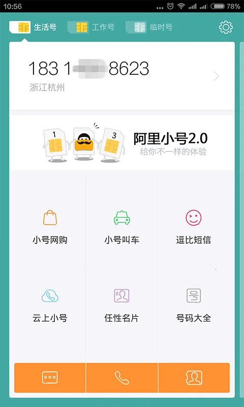 阿里小号是一款超棒的手机隐私保护软件。它能让你在一部手机上轻松拥有不用SIM卡的新号码,实现单卡多待。不管是移动、联通还是电信用户,都能每月免费随机领用3次小号。