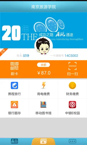 3. 丰富功能超实用:拥有移动图书馆,可快速借阅图书资料;设有携程旅行版块,方便学生放假购买车票;还能查看校园余额信息并快速刷卡。