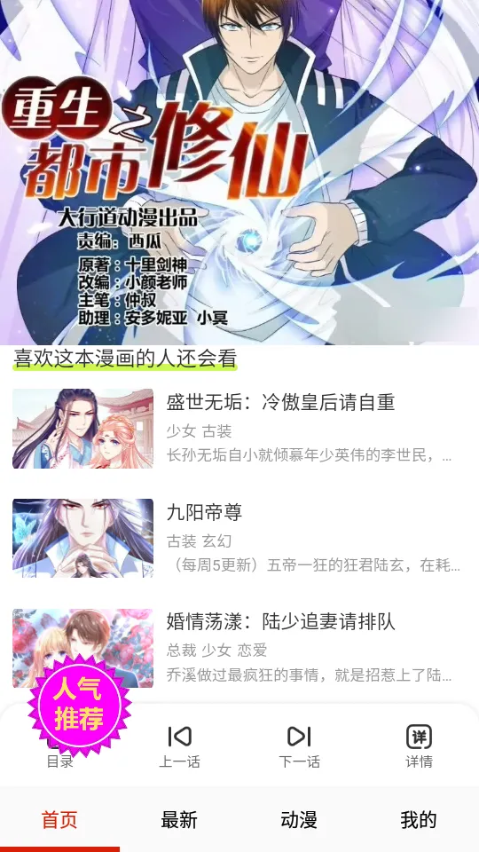 皮皮喵是一款备受欢迎的漫画阅读软件。它资源丰富,涵盖各类热门漫画,无论是电影动画改编还是原创作品都应有尽有。其优势众多,全平台支持弹幕互动,让阅读充满乐趣;每日签到能获丰厚奖励。而且更新及时,每日都会推送最新漫画。它的界面设计人性化,简洁直观,易于上手。阅览模式丰富,可在图文和文字间自由切换。画面高清,文字清晰,能带来完美的视觉享受。还支持多种漫画类型,满足不同用户口味。独特的离线缓存功能,即使没网络也能畅快阅读。总的来说,皮皮喵能给漫画爱好者带来超棒的阅读体验,是一款值得推荐的漫画软件。