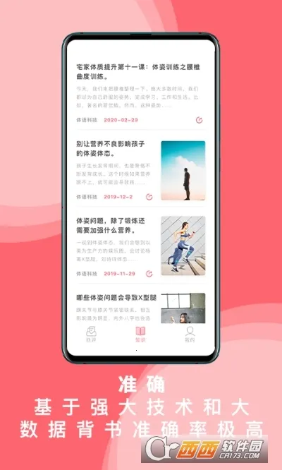 体姿大师2026官方最新版本是北京体语科技有限公司开发的手机软件,拍三张照片就能完成站姿健康智能监测,准确率高,能自动生成报告、定制矫正课程,还有丰富文章,助用户有效矫正体姿。