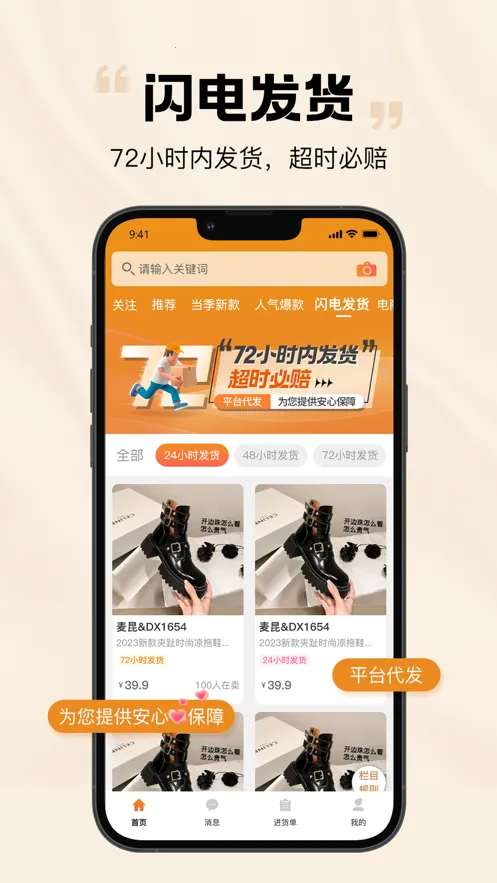 GO2货源安卓版手机版优势显著。它货源丰富,有超75万种商品供选,且直接与源厂合作,价格更低。支持一件代发,提供质检保障,严格控制商品品质,保证闪电发货,还有售前售后保障。具有一键发布和快速铺货优势,能快速上传商品并在三方店铺极速发布。拥有庞大商机流量,为用户提供百万级商机,还能帮用户捕获趋势、获取热销商品以助力选款,是女鞋批发及贸易的优质平台。