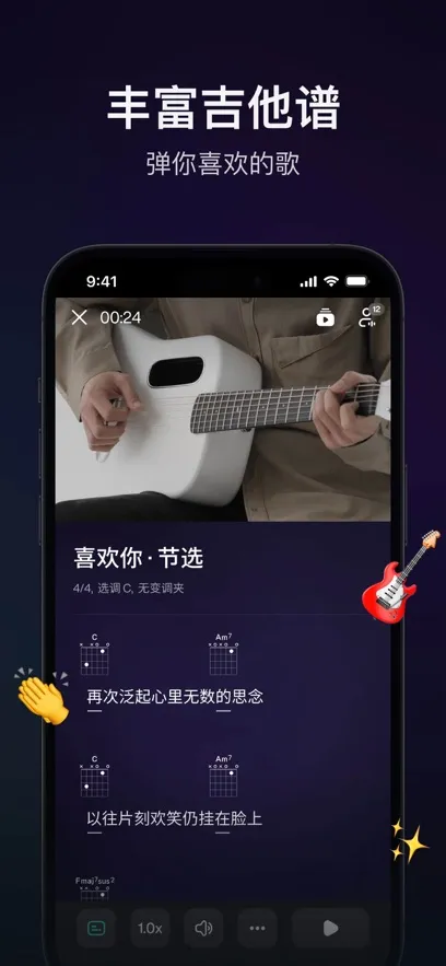 丰富的乐谱资源超给力,有3000首和弦谱和六线谱,不管是入门新手还是进阶者,都能找到适合自己水平的练习曲目,从零基础到精通全程陪伴。
