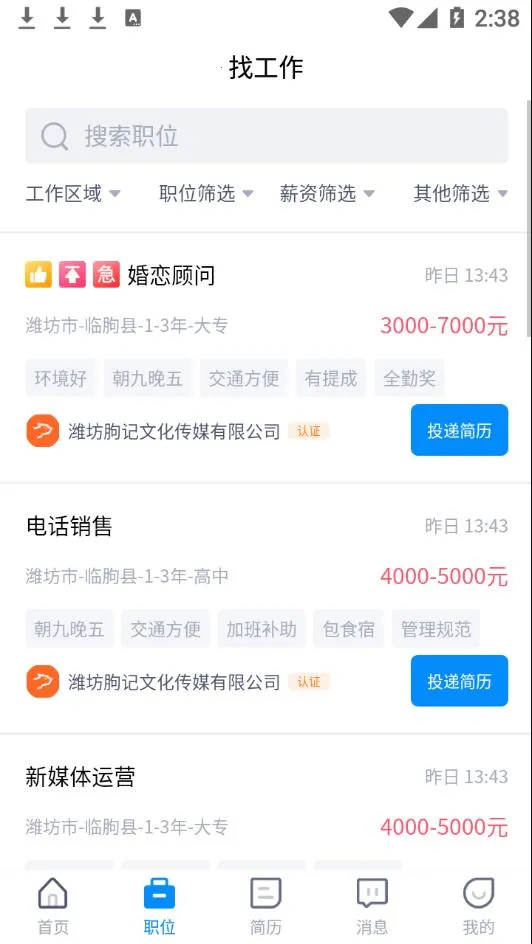 1. 海量职位选择:提供丰富工作信息,能满足不同用户求职需要,岗位信息详细划分,可根据自身需求一键查找适合工作。