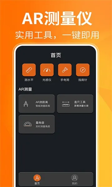 AR测距仪2026官方正版是一款手机测量工具,利用AR功能结合摄像头与算法实现精准实时测量。提供多种测量工具,页面极简,功能丰富,支持角度、面积等测量,还兼具光感仪、指南针等实用小工具,适用于多场景。