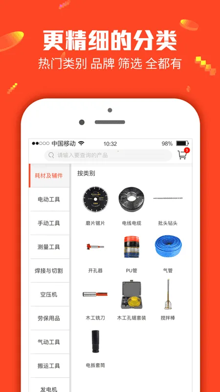 品类齐全:作为五金机电工具电商平台,产品品类超全,涵盖五金机械电气等不同门类,基本能满足所需机电设备。