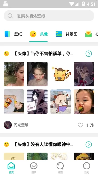 闪光壁纸是一款超棒的手机壁纸软件。它能为你带来海量高清无水印壁纸,同步热点,让你紧跟时尚潮流。软件有丰富的分类,帅哥、动漫、明星、风景等应有尽有。这里还有海量精美头像资源库,能定制专属个性头像,涵盖男生、女生、情侣、明星、动漫等多种类型,是年轻人更换头像的好选择。聊天背景图、朋友圈背景图等也十分丰富,各种风格任你挑。心情图片能完美诠释你的喜怒哀乐。它内存占用小,UI设计时尚个性,使用方便快捷。其功能亮点众多,有贴心的桌面设置,便捷个性化的设置方式,还有高品质风景主题壁纸。软件优势明显,支持多种自定义选项。更新内容不断优化功能布局,提升用户体验,让你轻松拥有绚丽多彩、与众不同的手机界面,享受便捷又有趣的壁纸使用体验。