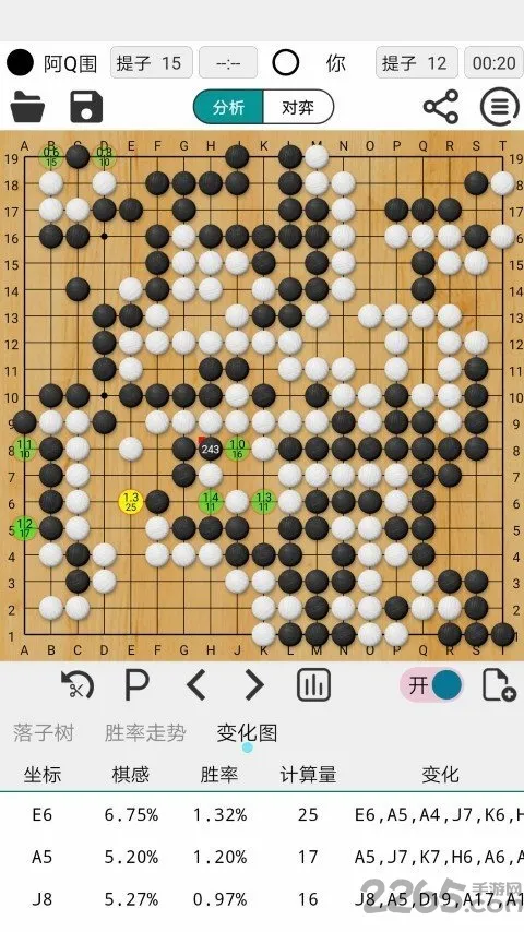 阿Q围棋极速版是好用的手机围棋软件,能导入棋谱,用AlphaGo技术。集成4大引擎,有多种功能如分析复盘、对弈、自弈等,支持多种棋盘主题、落子方式,可看直播、导棋谱,还有海量棋谱关卡等。