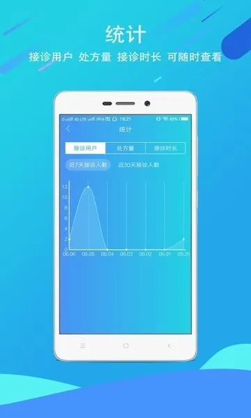 3. 应用中有统计版块,用户在这里能够看到详细的统计数据,如累计接诊人数、处方量和接诊时间等,助您快速了解工作动态。