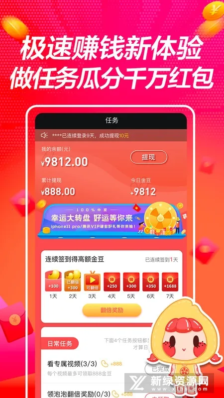 1. 提现超轻松:无门槛提现,领钱毫无套路,让你赚得舒心,领得放心。