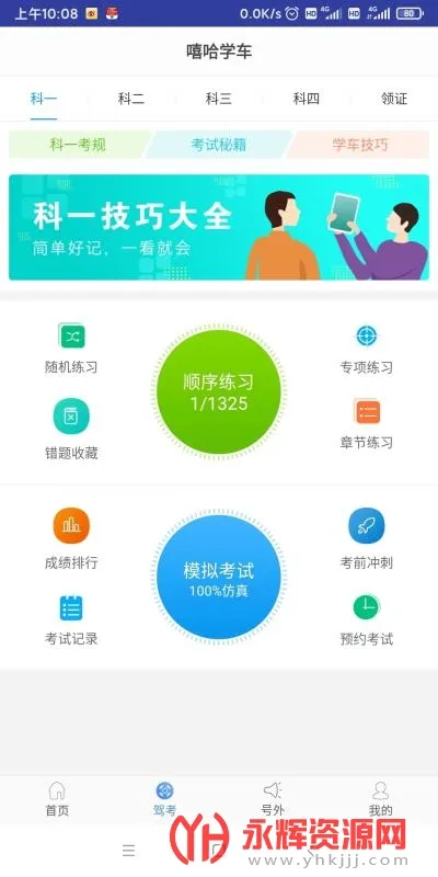 嘻哈学车2026官方正版是一款学车服务APP,能帮学员找驾校、预约教练,提供科目一至四题库及视频。有一键找驾校、预约教练、题库训练等功能,价格透明,涵盖学车全流程,助学员轻松拿证。