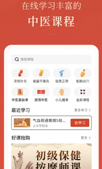 精准课程分类:搭配精准课程分类,方便用户快速找到所需内容,高效学习中医各类知识。