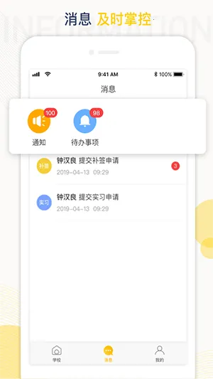 多角色协同管理:依托手机移动端,工学云实现学校、企业、学生、家长多方远程式多角色协同实习管理,辅以PC端强大功能,帮助教师全面监管及数据对接。