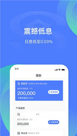 其优势显著。采用纯信用授信模式,无需抵押担保,最高可借20万元,能满足不同资金需求。智能风控实时审批,最快10分钟完成审核放款。日利率低至0.03,按实际用款天数计息,无额外费用。支持全流程移动端操作,主流银行快捷充值与网银充值便捷。还提供多维度账户查询功能。热门理财产品实时上架。并且有安心保障体系,全方位守护账户与信息安全,依托自主研发系统支撑业务运行,值得信赖。