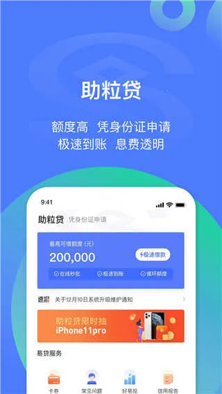 新用户专享双重福利,最高888元返息及限量10000个现金红包。凭身份证在线授信,额度最高20万元,息费结构清晰透明。