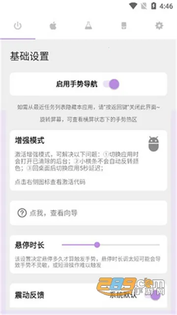 它融合iOS小横条设计与操作逻辑,轻触返回、上滑返回桌面、左右滑动切换应用等操作简单直观。还能根据个人习惯调整手势灵敏度和动画效果,实现量身定制。通过流畅手势交互轻松完成任务,支持多种安卓版本和设备,体积小巧不占空间,仿真设计带来细腻流畅融合,提升使用乐趣。总之,Gesture能让你的手机操作变得更便捷、有趣且个性化。