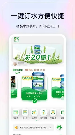 珍茗好生活5.0.0正式版下载特色显著。它采用金融级防伪技术,运用265位加密防伪,桶身二维码与瓶盖安全码双重绑定,杜绝假冒。全流程数字化溯源,从生产到配送全程云端追踪,可查水源地、生产批次、配送记录等信息。专注昆明地区桶装水配送,结合用户生活场景,提供精准高效的本地化服务。还有桶盖关联系统,优质水源保障,自建云端大数据系统追踪水的流向,能实时查询产品信息,为用户带来安全、便捷、有品质的用水体验。