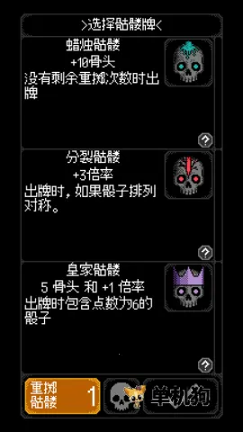 1、策略与运气完美结合:每一次的骰子投掷都是一场策略与运气的博弈,通过重掷骰子来激活骷髅卡牌的强力技能,需要在随机与计划之间找到平衡。