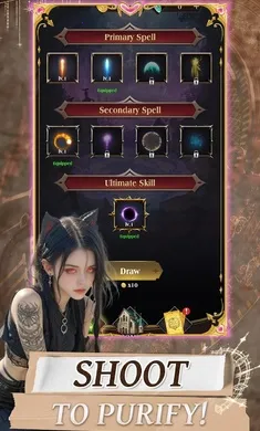 3. 净化之力巧妙运用:掌握强大净化魔法能量,发射密集净化弹幕攻击敌人核心,削弱黑暗束缚力量,成功净化能救赎失落灵魂,为世界带来生机。